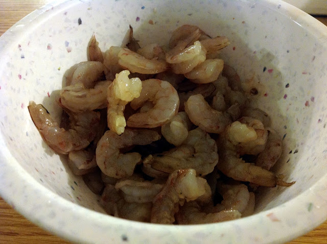 I always think the hardest part of shrimp meals is peeling them. Not my favorite part of cooking. You'll need about 1 pound of shrimp for this. Or double it- you may want to do that as well.
